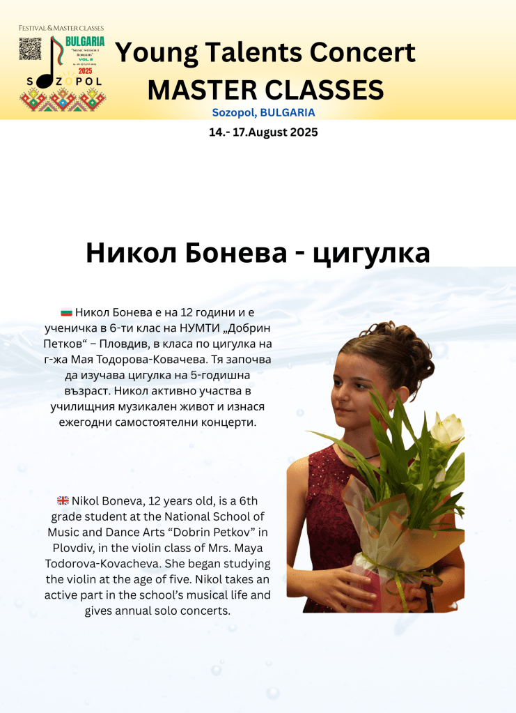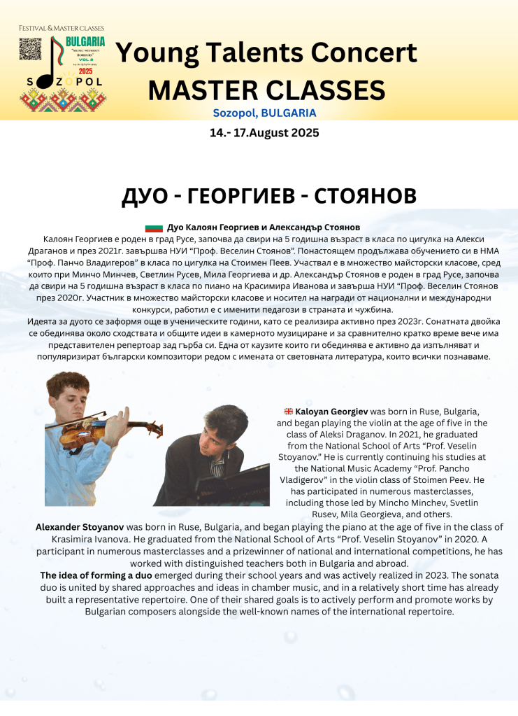 От 14 до 20 август, древният Созопол ще се превърне в сцена за талант, вдъхновение и нови приятелства. Музика без граници ви кани на майсторски класове, ансамблов курс и три незабравими концерта под открито небе: