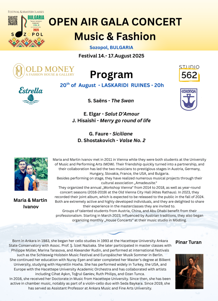 - August 20th: Closing concert with a fashion show at the “Laskarydi Excavations” in Sozopol.